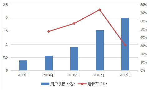 2010-2017年中國短視頻行業(yè)用戶規(guī)模及增長率