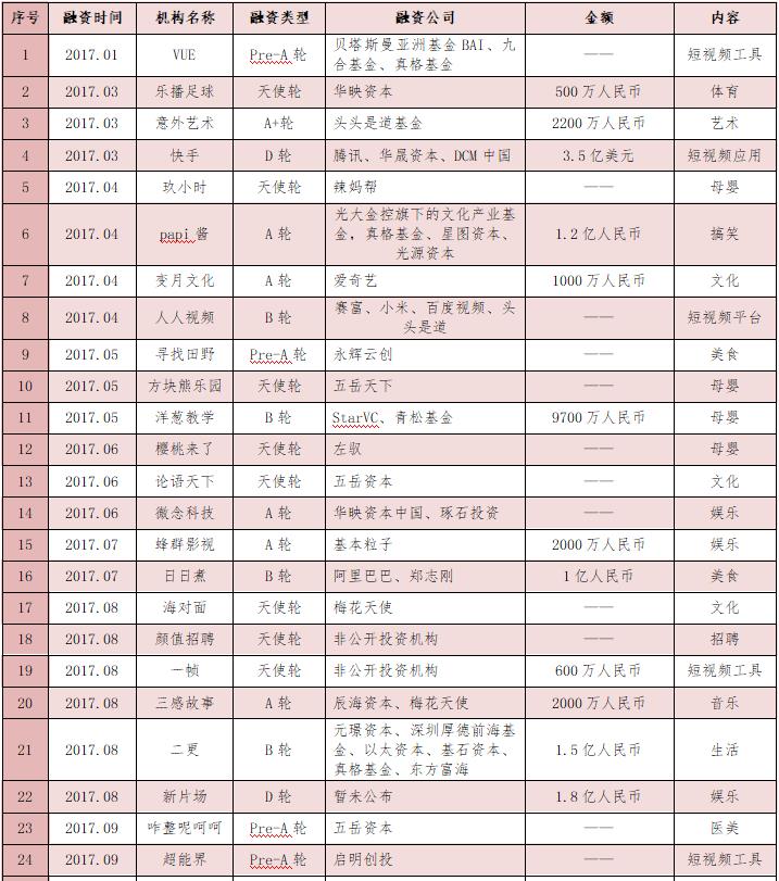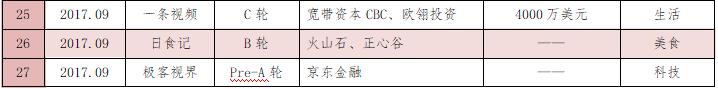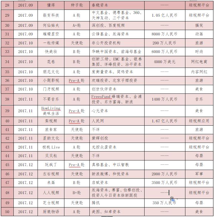 2017年中國短視頻行業(yè)各企業(yè)所處輪次分布情況