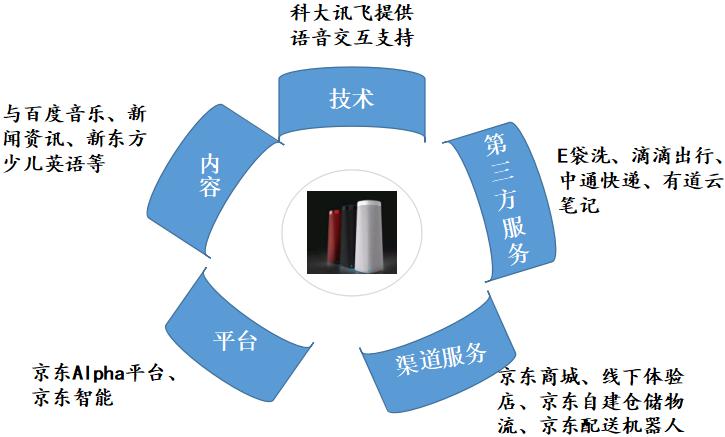 2.通過強(qiáng)強(qiáng)聯(lián)合的方式,京東通過電商平臺(tái)優(yōu)勢,整合行業(yè)中的技術(shù)廠商、內(nèi)容廠商及第三方服務(wù)廠商,并發(fā)起“京東智能音頻聯(lián)盟”,向聯(lián)盟內(nèi)成員輸出“JD+智能音頻解決方案”,實(shí)現(xiàn)叮咚音箱產(chǎn)品與優(yōu)質(zhì)內(nèi)容、服務(wù)的結(jié)合。