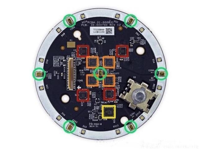 下圖展示了 Echo 拆解后的部件??梢钥吹剑悄芤粝涞挠布⒉凰銖?fù)雜(相對(duì)于無人駕駛等“重型”AI 產(chǎn)品)。